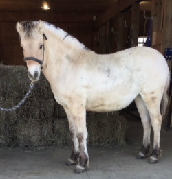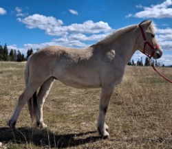 Nice young mare. Has been running with our registered Fjord for 2026 foal. Very laid back. Leads, ties. Great with farrier. Perfect time to be started.